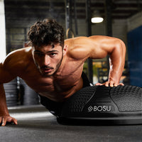 The BOSU® NexGen™ Pro Balance Trainer has a textured dome with 4 quadrants to help with grip and positioning. These quadrants allow for precise body position and cueing while working on cardio, agility, strength, core, balance or mobility exercises. The textured dome enhances grip for both hands and feet. The BOSU® NexGen™ Pro Balance Trainer is ideal for group fitness, complex movements or advanced fitness professionals in a professional setting. It is designed with a patented non-slip, dually over-molded base meant to withstand continual daily gym usage
